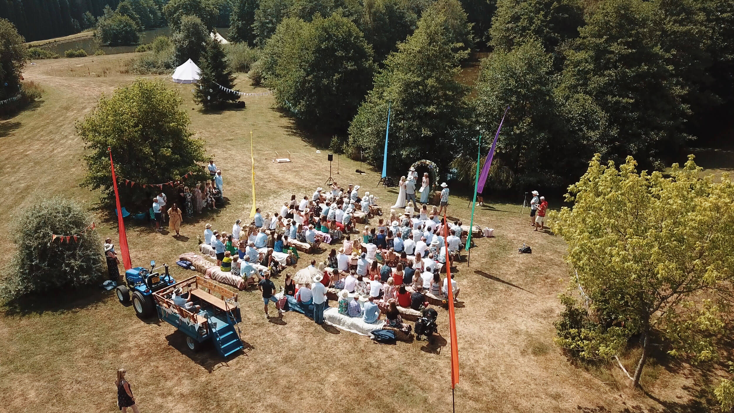 This beautiful 30 acre site consists of two pristine lakes, natural woodland, open spaces and a novel walled garden. Deer, rabbits, geese and ducks are regular visitors. Access can be via a pretty walk through Bluebell Wood, decorated with bunting or take the more direct route from the parking area. This venue offers great flexibility and distinct areas to use for tipis/marquee, bell tents, outdoor games and blessing/ceremony.